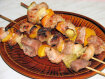 Na patyczki do szaszłyków nabijać na przemian mięso, żółtą paprykę, mięso, cebulę, mięso itd. Na rozgrzany grill wyłożyć gotowe szaszłyki i piec około 20 minut.